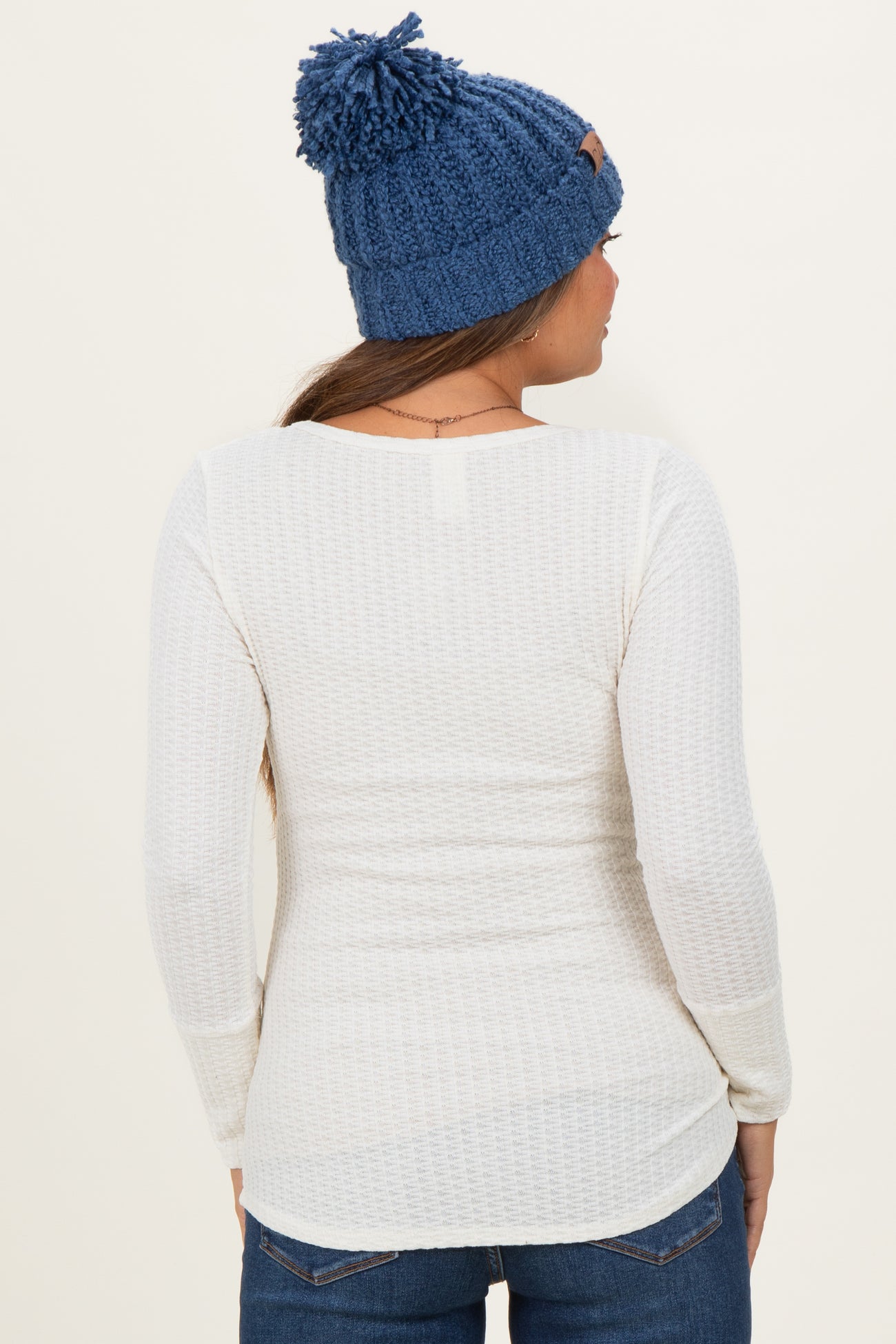 Stay cozy and stylish with our Cream Waffle Rib Knit Maternity Henley Top. Crafted from soft, breathable waffle-knit fabric, this long-sleeve top offers gentle stretch to comfortably accommodate your growing bump. Featuring a flattering scoop neckline and button-front detail, it’s perfect for layering or wearing on its own. The rib-knit cuffs add a touch of texture and snug fit to keep you warm during cooler months. Whether you're running errands or enjoying a casual day out, this versatile maternity henley combines comfort and fashion effortlessly. A must-have staple for every mom-to-be!