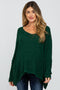 A speckled maternity sweater featuring long drop sleeves, a hi-low hemline, and a v-neckline.