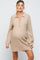 A maternity sweater dress featuring a collared neckline, long sleeves, a front button placket and ribbed trim.