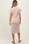 Elevate your maternity wardrobe with our Beige Colorblock Hem Mock Neck Maternity Sweater Dress. Crafted from soft, stretchy knit fabric, this dress gently hugs your baby bump while offering all-day comfort. The mock neck adds a chic touch, making it perfect for both casual outings and cozy nights in. Featuring subtle vertical ribbing for a flattering silhouette and a stylish beige colorblock hem accent in white, this midi-length dress effortlessly blends fashion with function. Pair it with sandals or boots for a versatile look throughout your pregnancy journey. Easy care and designed to grow with you!