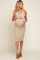 Beige Ribbed Knit Fitted V-Neck Maternity Midi Dress