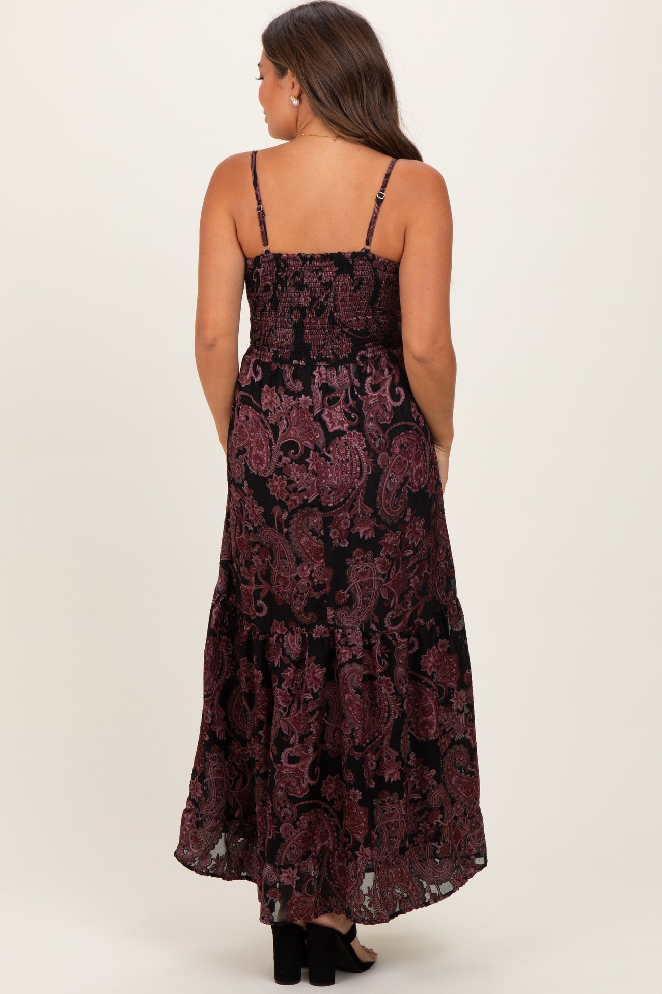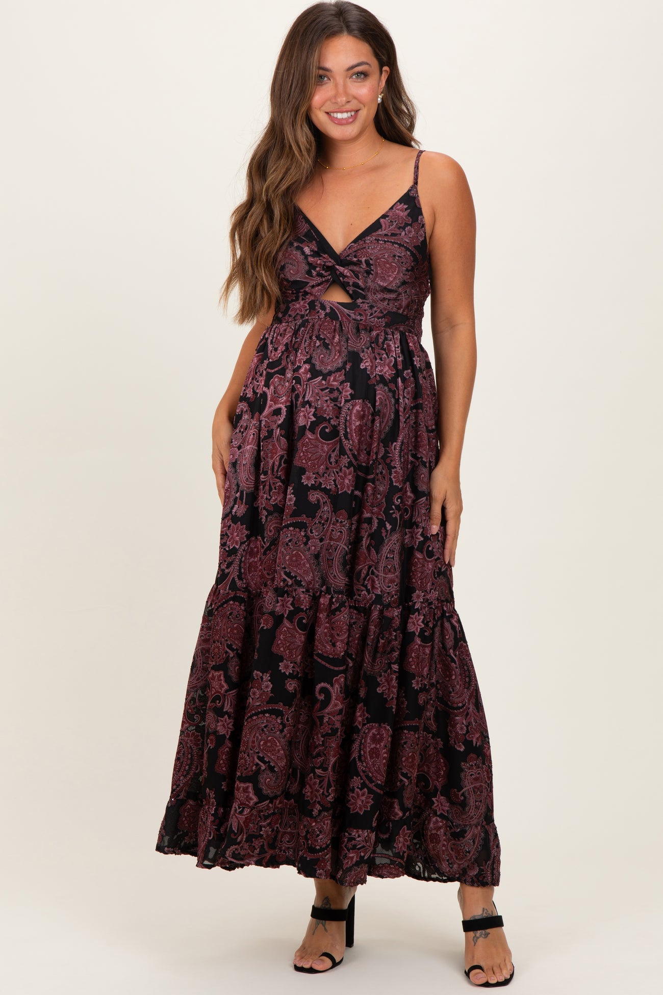 Black Paisley Sleeveless Twist Front Maternity Maxi Dress