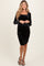 Black Velvet Long Sleeve Ruched Maternity Midi Dress