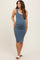 Blue Ribbed Fitted Sleeveless Maternity Dress