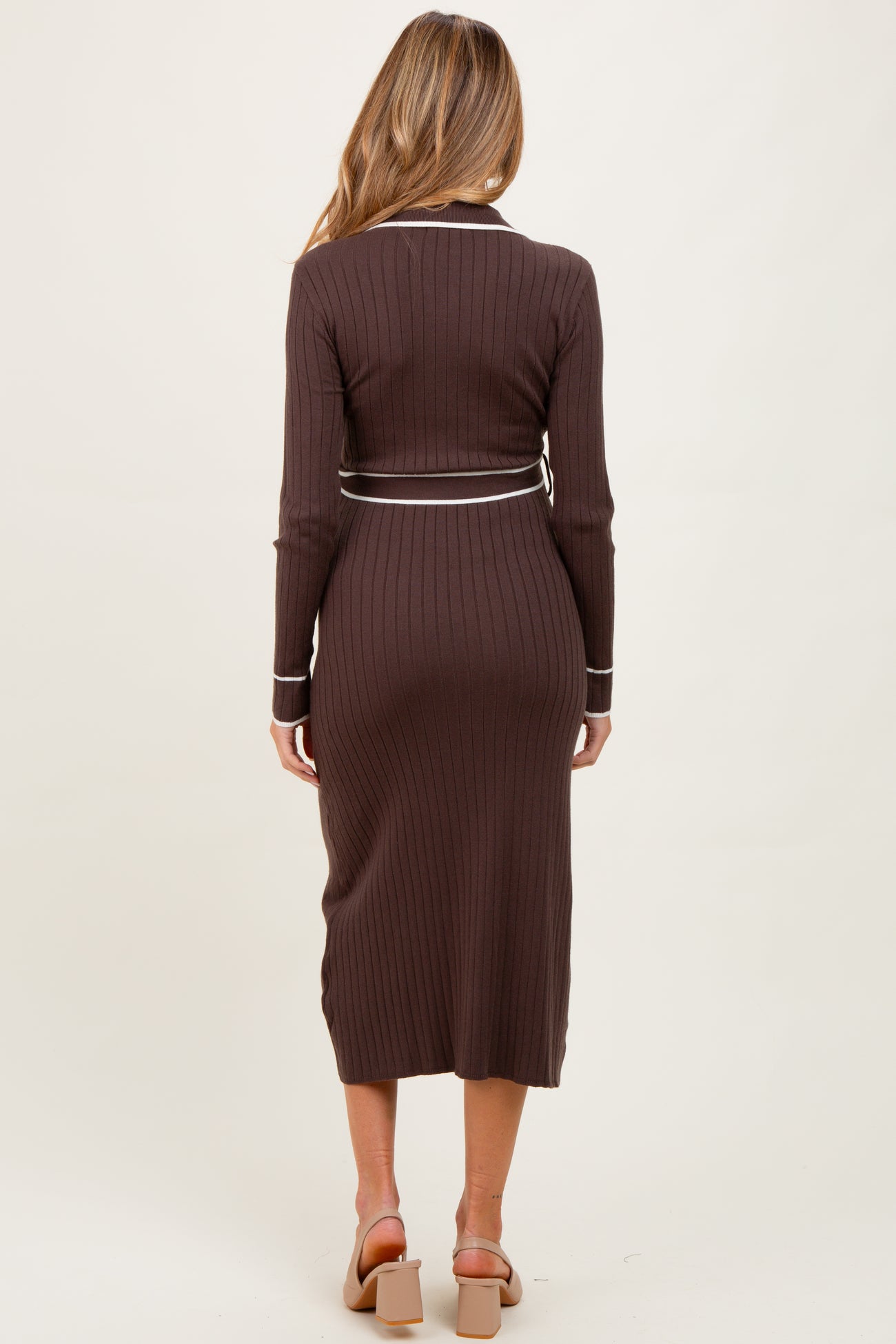 Brown Soft Stretchy Rib Fitted Maternity Sweater Midi Dress