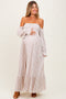 Burgundy Pleated Satin Smocked Waist Maternity Midi Dress
