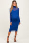 Denim Blue Floral Embroidered Maternity Midi Dress