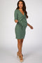 An ultra soft, brushed knit maternity/nursing fitted dress featuring a v-neckline with a wrap front and side tie detailing for easy access. Also features 3/4 length sleeves.
