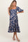Light Navy Floral Pleated Bodice Maternity Midi Dress