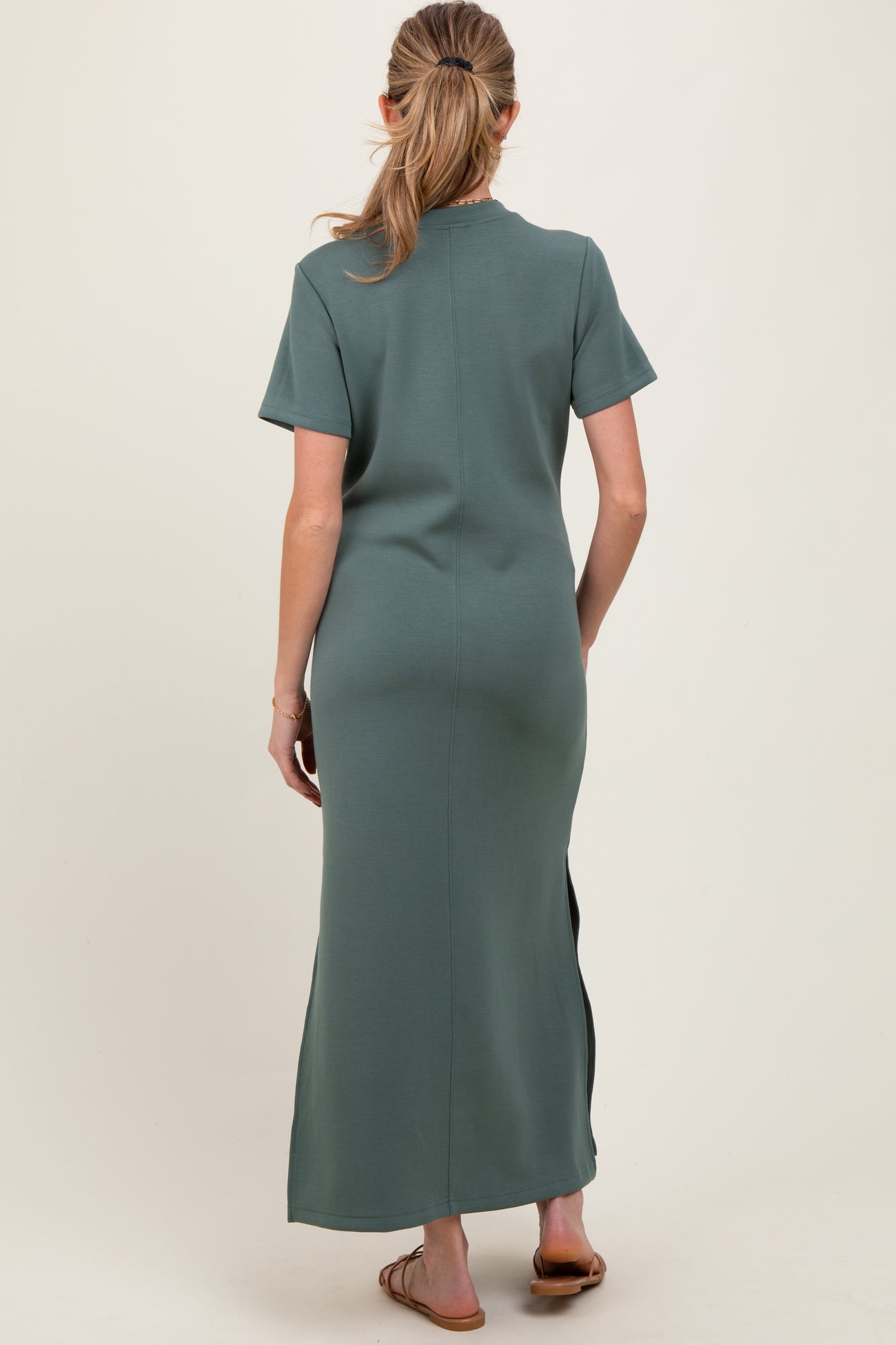 Light Olive Basic Side Slit Short Sleeve Maternity Midi Dress