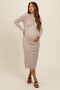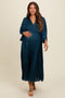 Light Olive Satin Pleated V-Neck Maternity Maxi Dress