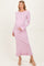 Elevate your maternity wardrobe with this ribbed knit maxi dress designed for comfort and style throughout your pregnancy. Crafted from a soft, stretchy fabric, it gently hugs your growing bump while providing ease of movement. The dress features a flattering bow detail at the back, adding a charming and feminine touch. Long sleeves with delicate button accents and a subtle ruffled hem complete the look, making it perfect for both casual outings and special occasions. Embrace effortless elegance and cozy sophistication with this must-have maternity dress.