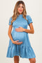 Embrace elegance and comfort with our Mauve Satin Smocked Mock Neck Maternity Dress. Featuring a luxurious satin finish, this dress offers a beautifully soft drape that flatters your pregnancy glow. The smocked bodice provides gentle stretch and support, perfectly accommodating your growing bump. Designed with a chic mock neck and puff sleeves, it blends vintage charm with modern style. The flowy skirt with a ruffled hem adds a playful touch, ideal for baby showers, date nights, or special occasions. Lightweight and breathable, this dress is a must-have for expecting moms who want to feel stylish and comfortable all day.