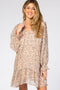 An ultra soft, brushed knit maternity/nursing fitted dress featuring a v-neckline with a wrap front and side tie detailing for easy access. Also features 3/4 length sleeves.