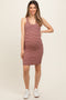 A solid hued maternity midi dress featuring short balloon sleeves, a self-tie split neckline and a ruffle hem.