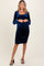 Navy Blue Velvet Long Sleeve Ruched Maternity Midi Dress