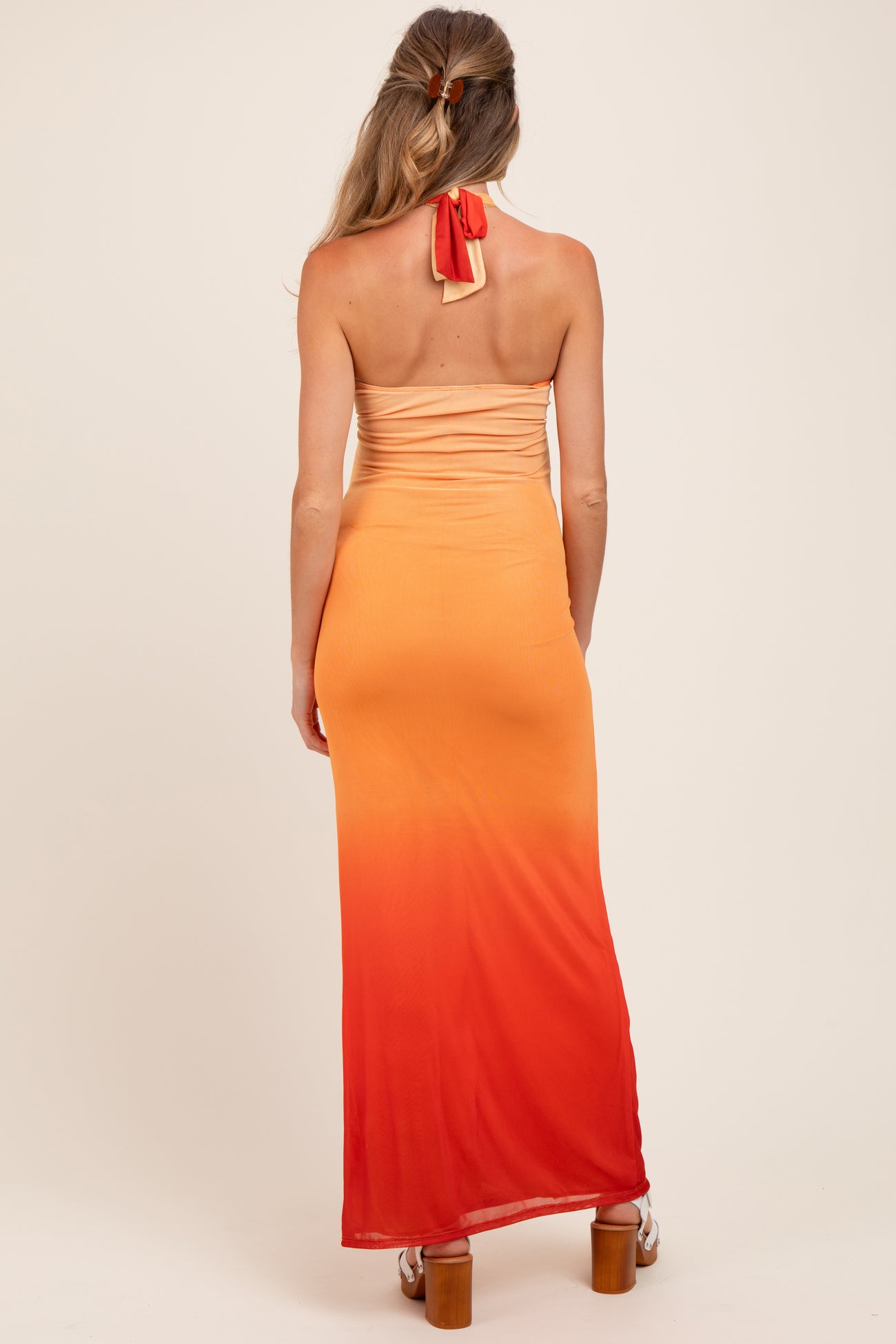 Peach Ombre Halter Neck Cutout Maternity Maxi Dress