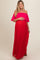 Red Pleated Off Shoulder Colorblock Maternity Maxi Dress