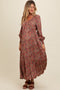 Rust Floral Textured Bubble Sleeve Maternity Maxi Dress