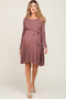 Taupe Floral Off Shoulder Long Sleeve Maternity Maxi Dress