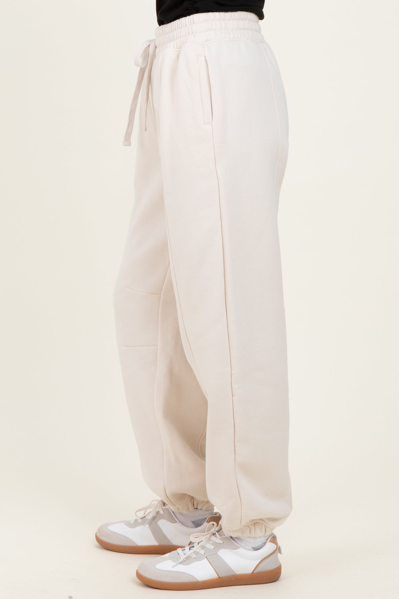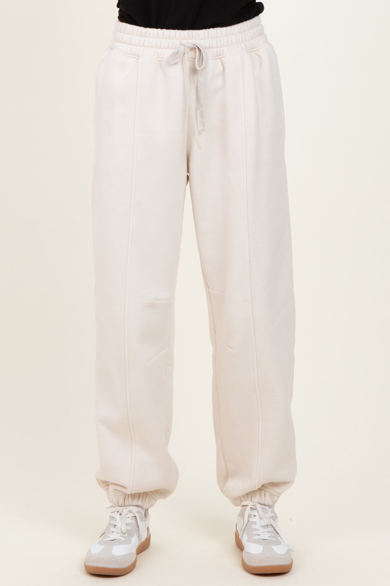 Cream Drawstring Relaxed Fit Sweatpants
