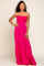 A solid maxi dress with a smocked bust, halter neckline and cutout detail in back.