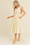 A solid hued maxi dress featuring a ruffled waist, short sleeves, side pockets and a rounded neckline.