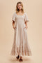 Blue Floral Smocked Puff Sleeve Maxi Dress