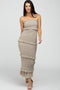 Green Gingham Print Smocked Fitted Self-Tie Midi Dress