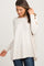 A solid knit top featuring two front pockets, dolman long sleeves with ribbed cuffs, and a rounded neckline.