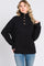 A sweater featuring top functioning buttons and long drop shoulder sleeves. When buttoned up, the neckline is mocked and when unbuttoned the neckline features a collar.