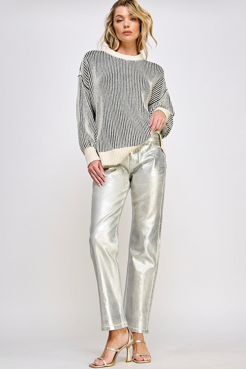 Elevate your cozy wardrobe with this stylish ribbed balloon sleeve sweater. Featuring a relaxed fit and unique balloon sleeves, it offers both comfort and a chic silhouette. The fine ribbed knit adds texture and depth, while the round neckline and ribbed cuffs ensure a polished finish. Perfect for layering or wearing on its own, this versatile sweater blends modern design with cozy warmth for effortless everyday elegance. Pair it with your favorite jeans or trendy trousers for a standout look that's both casual and sophisticated.