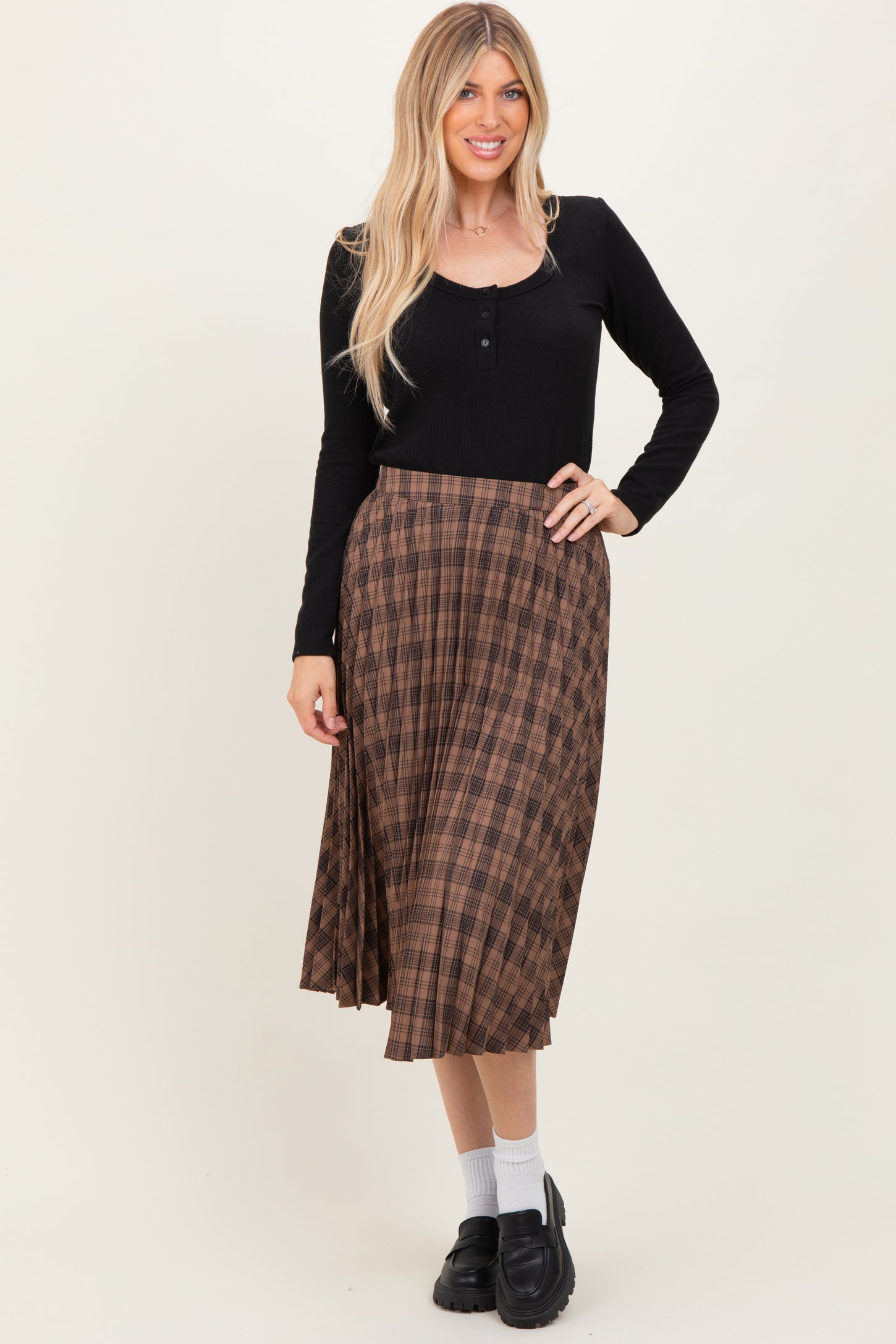 Elevate your everyday wardrobe with our Black Ribbed Long Sleeve Henley Top. Crafted from soft, stretchy ribbed fabric, this top offers a flattering fit that hugs your curves comfortably. Featuring a classic scoop neckline with a three-button placket, it adds subtle detail to a timeless silhouette. Perfect for layering or wearing on its own, this versatile top pairs effortlessly with skirts, jeans, or trousers. Ideal for casual outings or cozy days at home, it combines style and comfort in one essential piece. Available in a sleek black shade, it's a must-have basic you'll reach for again and again.