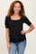 Black Ribbed Ruched Square Neck Puff Sleeve Top