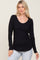 A solid rib knit top featuring a scoop neckline and long sleeves.