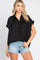 Black Satin Button Front Collared Short Sleeve Top