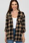 A heathered long sleeve top with a draped wrap front and ruched sides.