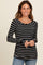 Elevate your casual wardrobe with our Black Striped Ruched Side Long Sleeve Top. This chic piece features classic black and white horizontal stripes that offer a timeless look. The side ruching adds a flattering, feminine silhouette, while the soft, stretchy fabric ensures all-day comfort. With its versatile scoop neckline and cozy long sleeves, this top pairs perfectly with jeans or skirts for effortless style. Whether layered or worn solo, it’s a must-have staple for any season. Machine washable for easy care. Available in a range of sizes to suit your fit needs.