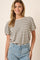 A textured striped top featuring short puff sleeves, a rounded neckline and back keyhole cutout button closure.