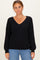 Black V-Neck Drop Shoulder Back Bow Tie Detail Sweater