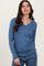 Blue Brushed Knit V-Neck Long Sleeve Top