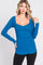 Blue Ribbed Sweetheart Neck Long Sleeve Top