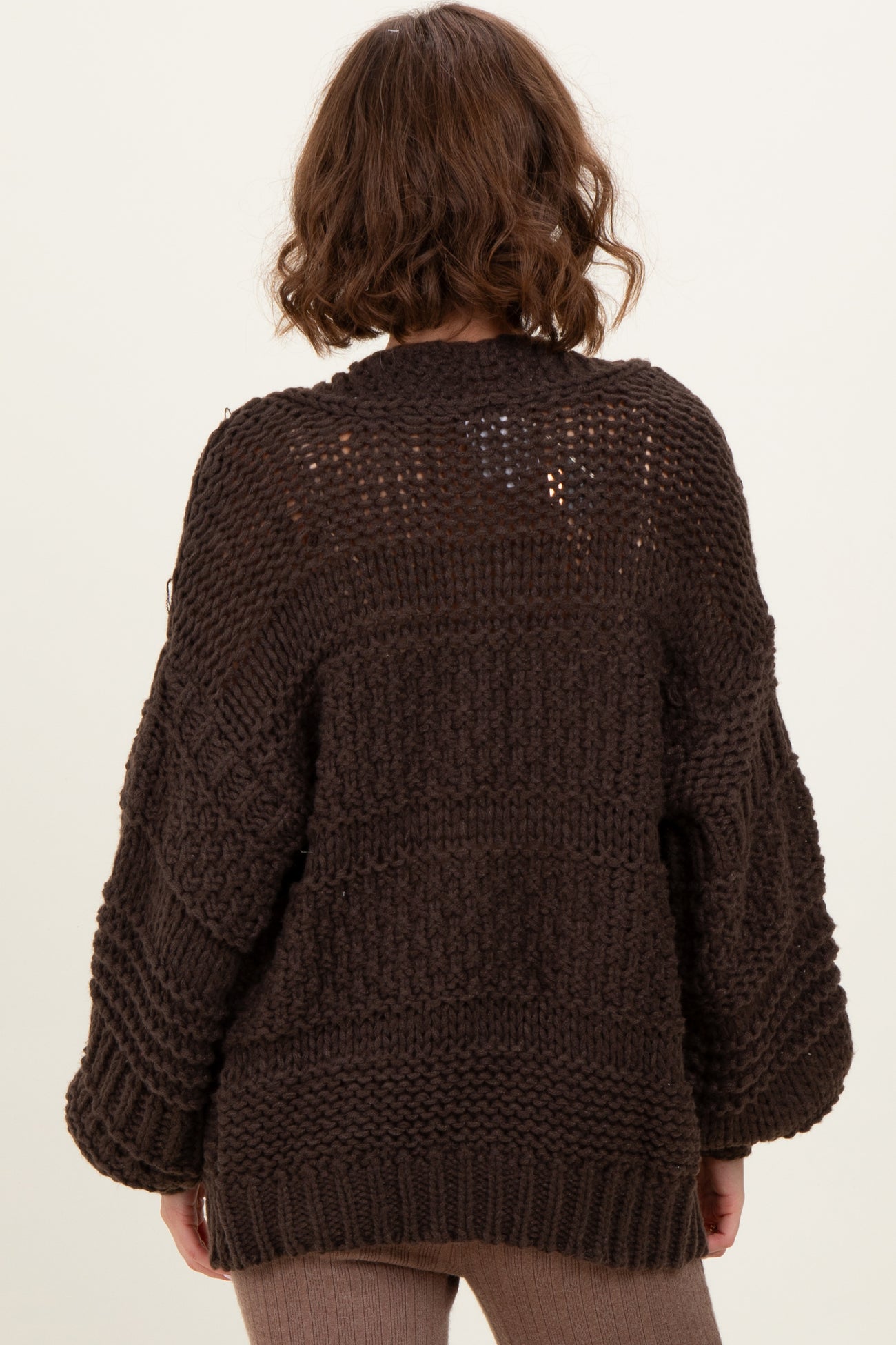 Cozy up in style with our Brown Oversized Chunky Knit Cardigan. Crafted with a thick, textured knit, this cardigan wraps you in warmth and comfort. The relaxed, oversized fit makes it perfect for layering over your favorite tops or dresses, while the rich brown hue adds a timeless touch to any outfit. Featuring long sleeves with ribbed cuffs and an open front design for effortless wear, this versatile piece is a must-have for your fall and winter wardrobe. Pair it with jeans or knit pants for a chic, laid-back look that's both comfy and stylish.