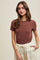 Stay effortlessly stylish with our Brown Ribbed Short Sleeve Curved Hem Top. Crafted from soft, breathable fabric, this versatile top features a flattering ribbed texture and a modern curved hem for a subtle twist on the classic tee. Its rich brown shade adds warmth to any outfit, while the short sleeves and crew neckline keep it comfortable and casual. Perfect for layering or wearing solo, this top pairs beautifully with jeans, skirts, or casual trousers. Elevate your everyday wardrobe with this must-have piece that blends comfort and chic in one timeless design.
