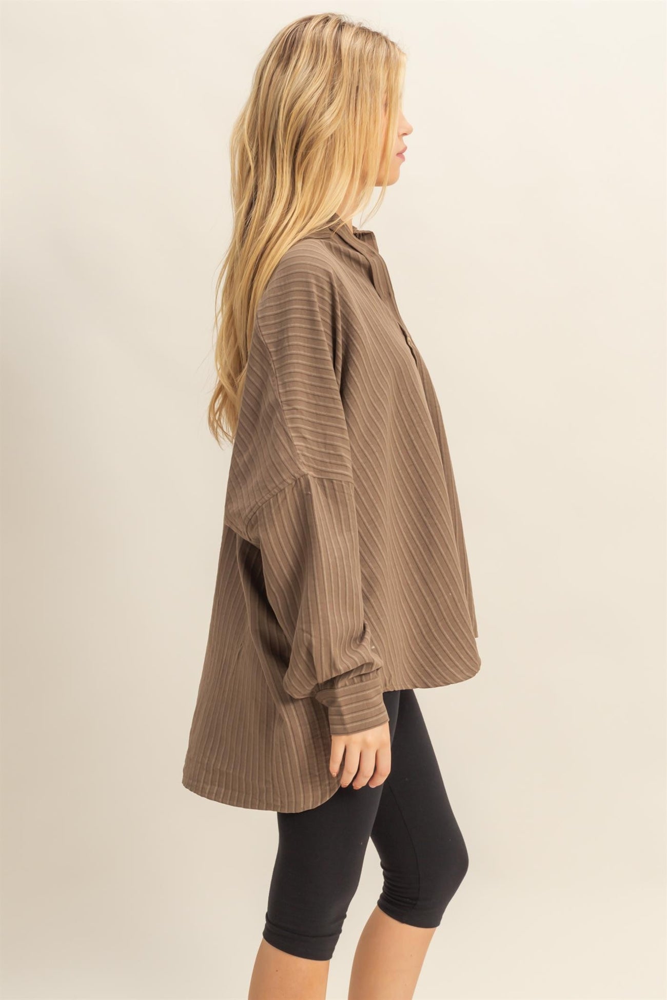 Brown Vertical Stripe Button-Down Oversized Shirt