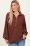 Charcoal Ribbed Short Sleeve V-Neck Reverse Stitch Top