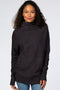 An ultra soft knit nursing top featuring fleece lining, an adjustable drawstring hood, long sleeves and a layered front for easy access.