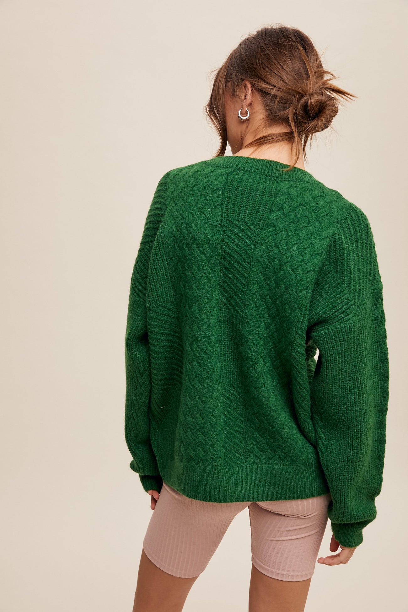 Stay cozy and stylish with our Green Striped Mixed Cable Knit Sweater. Featuring an eye-catching blend of classic cable knit patterns and ribbed stripes, this rich green sweater adds texture and depth to your wardrobe. Crafted from a soft, warm fabric, it promises all-day comfort for cooler days. The relaxed fit and dropped shoulders create a laid-back vibe, while subtle pink stripe accents add a modern twist. Perfect for pairing with jeans or casual pants, this versatile knit is your go-to piece for effortless fall and winter style. Embrace warmth without sacrificing fashion!
