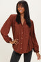 Ivory Polka Dot Long Sleeve Button Down V-Neck Top