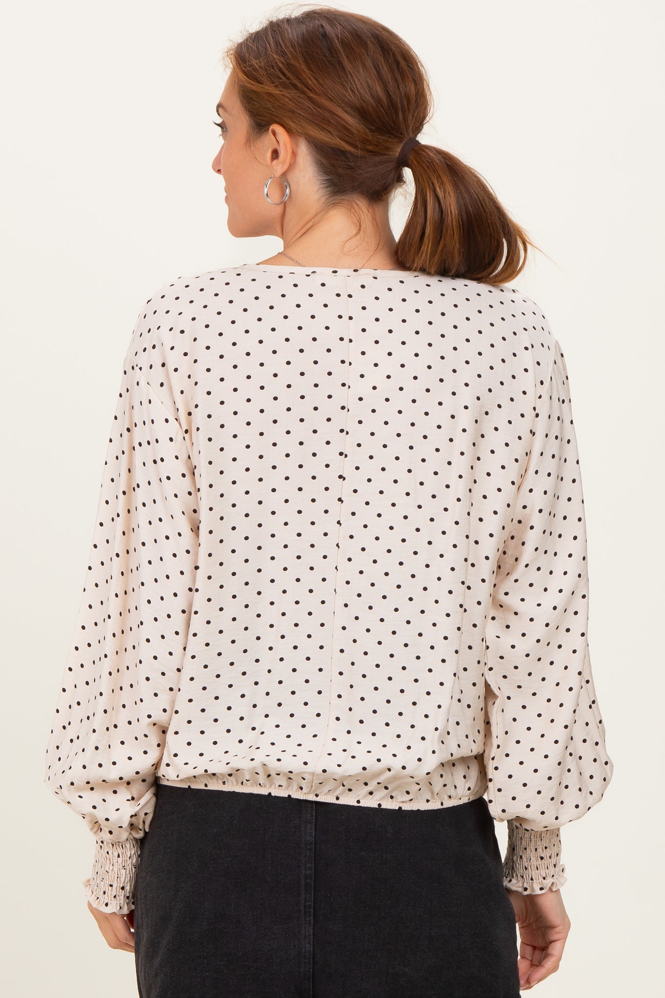 Ivory Polka Dot Long Sleeve Smocked Top